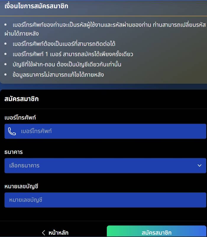 - เบอร์โทรศัพท์ 1 เบอร์ สามารถสมัครได้เพียงครั้งเดียว