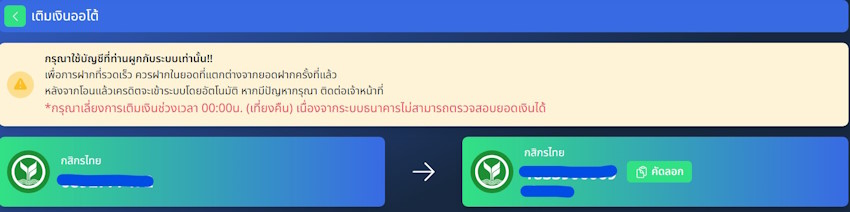 - บัญชีที่ใช้ฝาก-ถอน ต้องเป็นบัญชีเดียวกันเท่านั้น