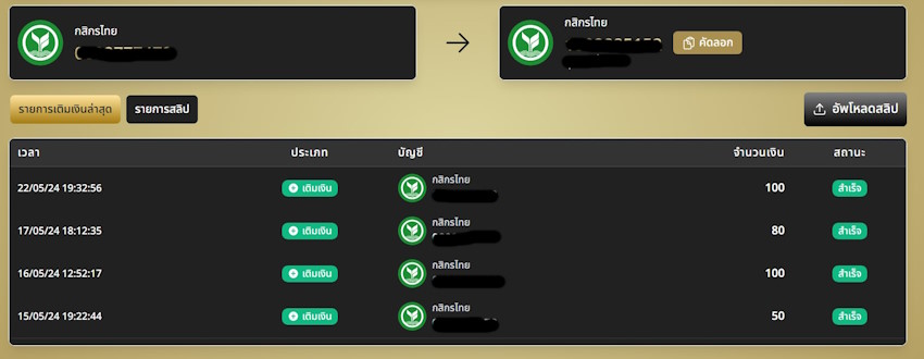 - บัญชีที่ใช้ฝาก-ถอน ต้องเป็นบัญชีเดียวกันเท่านั้น