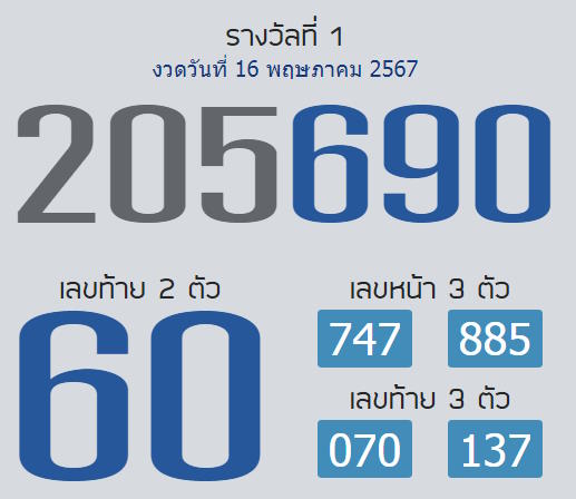 ส่วนหวยไทยวันที่ 22 พ.ค. 2567 ที่ผ่านมา